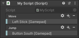 In the image below, you can see the actions displayed in the inspector. In this example they have been configured so they are bound to Gamepad controls.