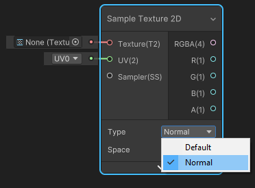 Attach the RGBA(4) Output Slot of the Default Type Nodes as shown below. Note that you should attach the Normal Type Node's Output Slot to the Normal(Tangent Space)(3) Input Slot.