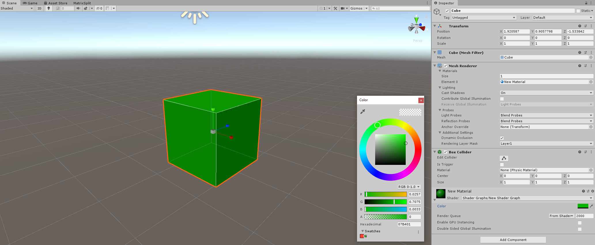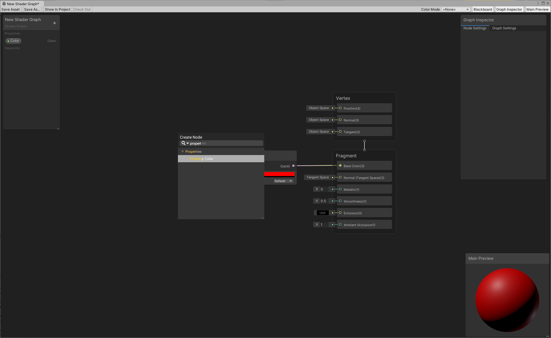 Save your graph, and return to the Material's Inspector. The property now appears in the Inspector. Any changes you make to the property in the Inspector affects all objects that use this Material.