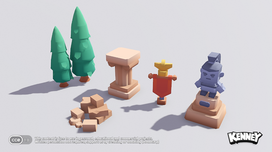 Assets included in this package (2D sprites, 3D models and sound effects) are [CC0 licensed](https://creativecommons.org/publicdomain/zero/1.0/)