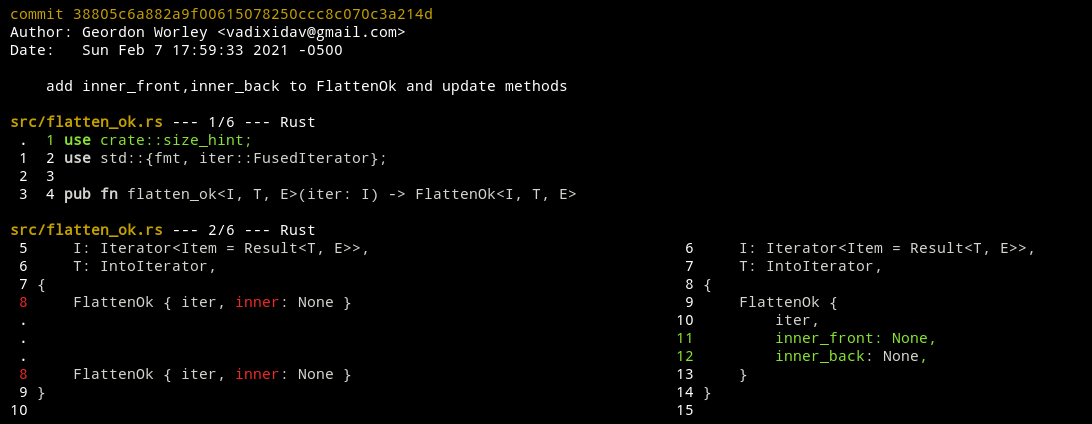 Display. Difftastic has a side-by-side display which usually works well, but can be confusing.
